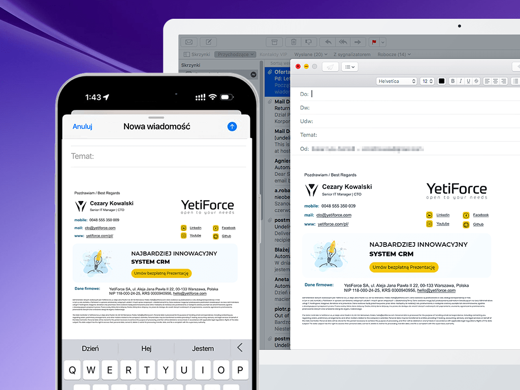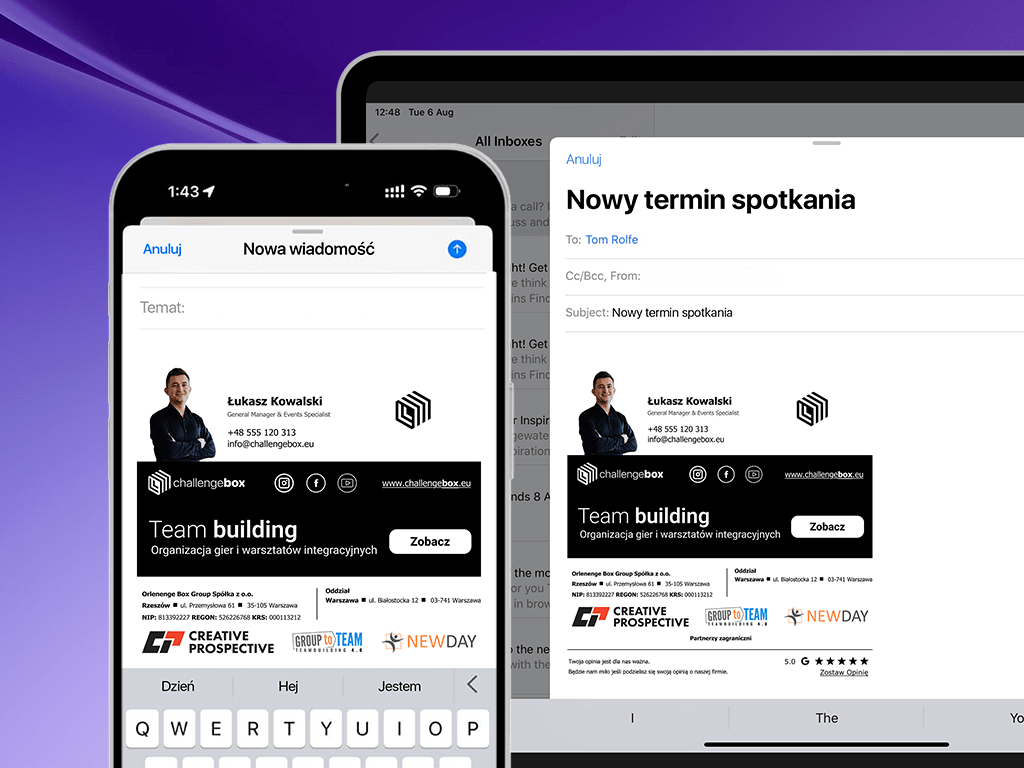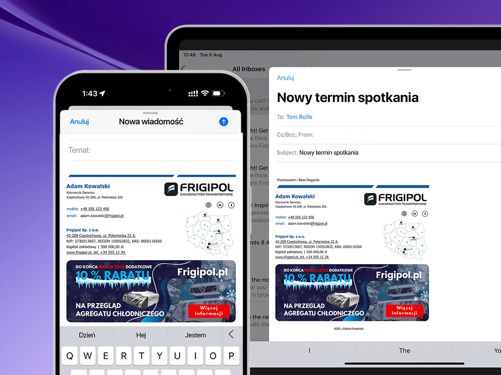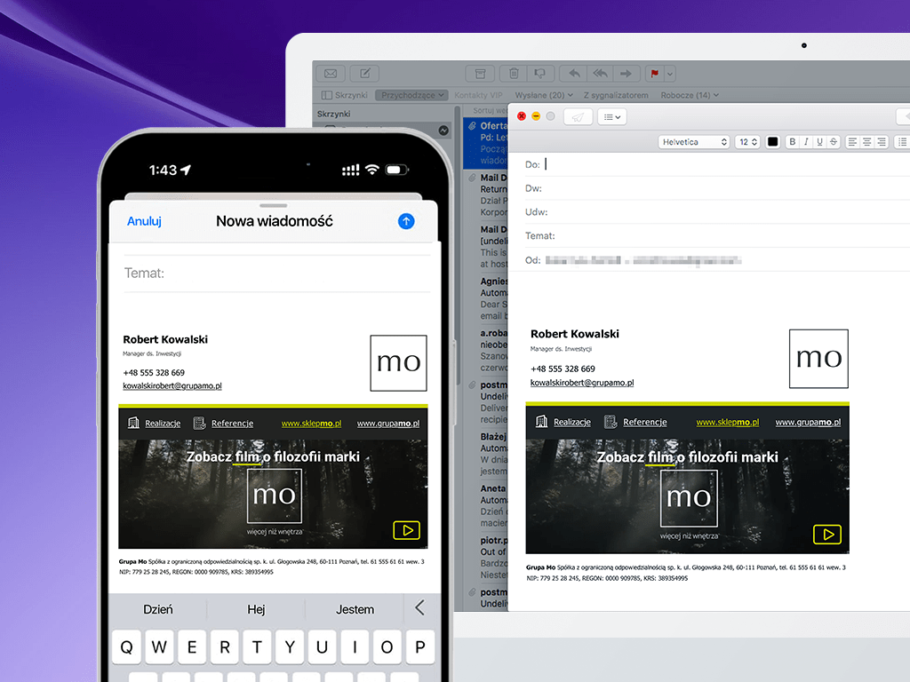 - ✔︎ Pełna zgodność z Outlook (Windows / Mac), Gmail, Apple Mail, Thunderbird
